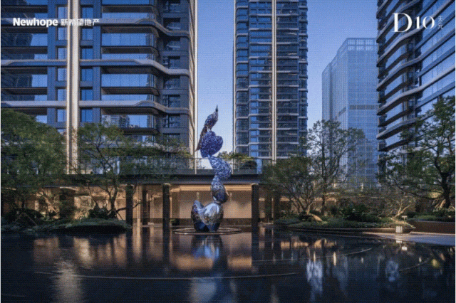 新希望·D10天元主大门,宽约64米、高约7.5米,同时配以艺术雕塑、进深约8米的艺术门厅,打造出真豪门的格调。