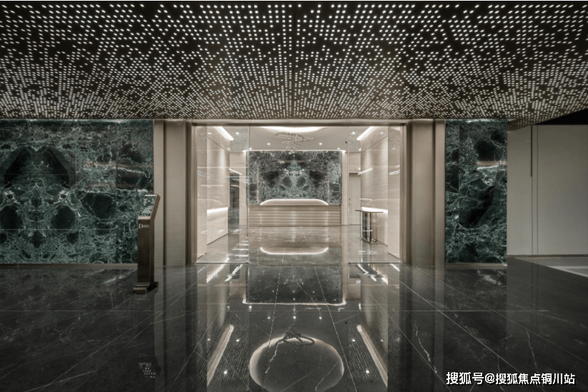 项目地下车库也采用了大量铝板、奢石,配以劳斯莱斯星空顶设计,赋予了塔尖人群全方位的仪式感。